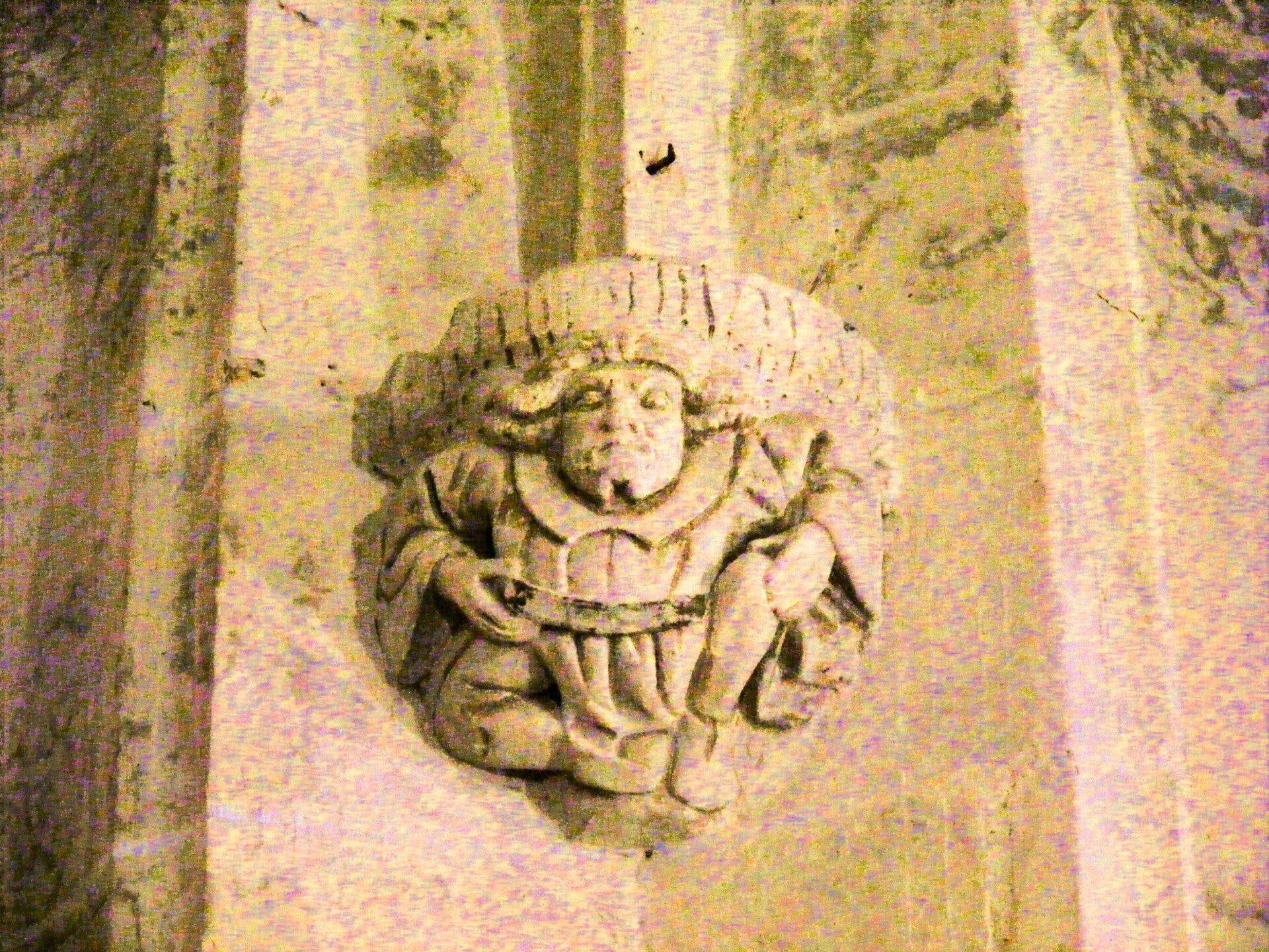 La pointe Nord du chœur (abritant le maître hôtel), pourrait être le premier élément qui composait la chapelle royale édifié par Guillaume d'ERCUIS au XXIIIème siècle. En effet les voûtes encadrant les vitraux reposent sur des culs de lampe représentant à gauche un angelot, et à droite la sculpture d'un personnage, qui pourrait être Guillaume d'Ercuis lui même. C'était une pratique courante qui constituait la signature des bâtisseurs de cathédrale. Ces voûtes sont différentes des autres de par leur profil et leur structure, elles sont plus fines, certainement due à une époque différente. D'autres études devront le confirmer.